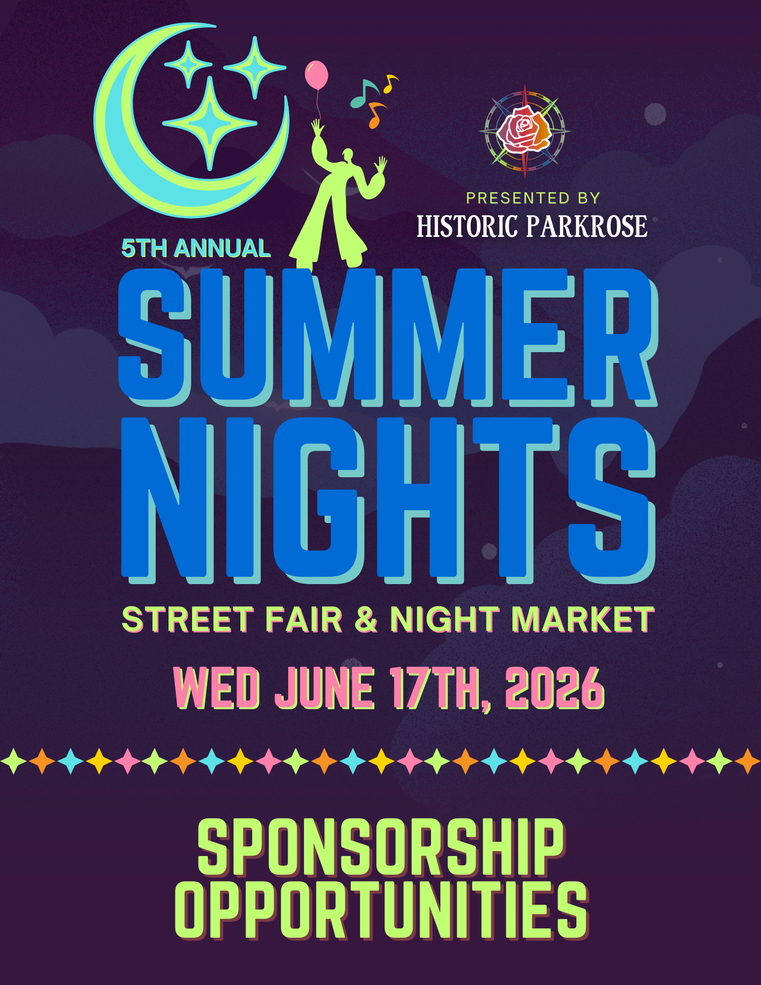 From sunset to stars, SUMMER NIGHTS on June 17th, 2026 brings Parkrose to life with a street fair featuring live music, magical performers, local flavor, 35+ vendors, artisans and free fun for ALL!
