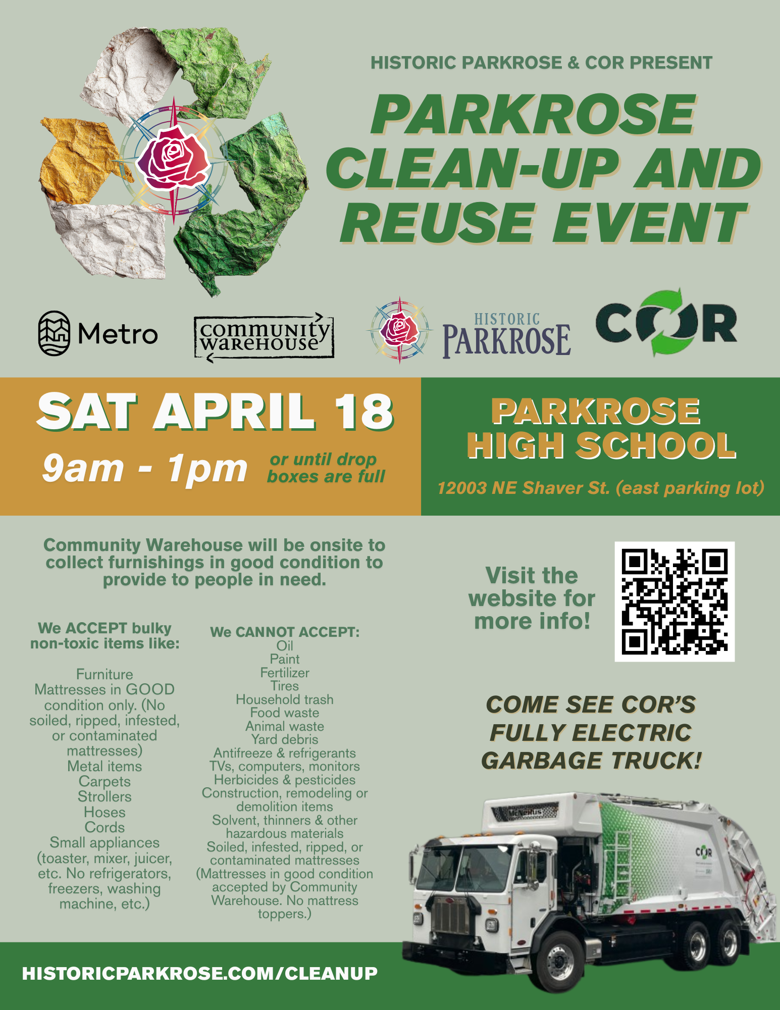 Join us for a community clean-up and reuse event to help keep Parkrose beautiful while supporting neighbors in need.